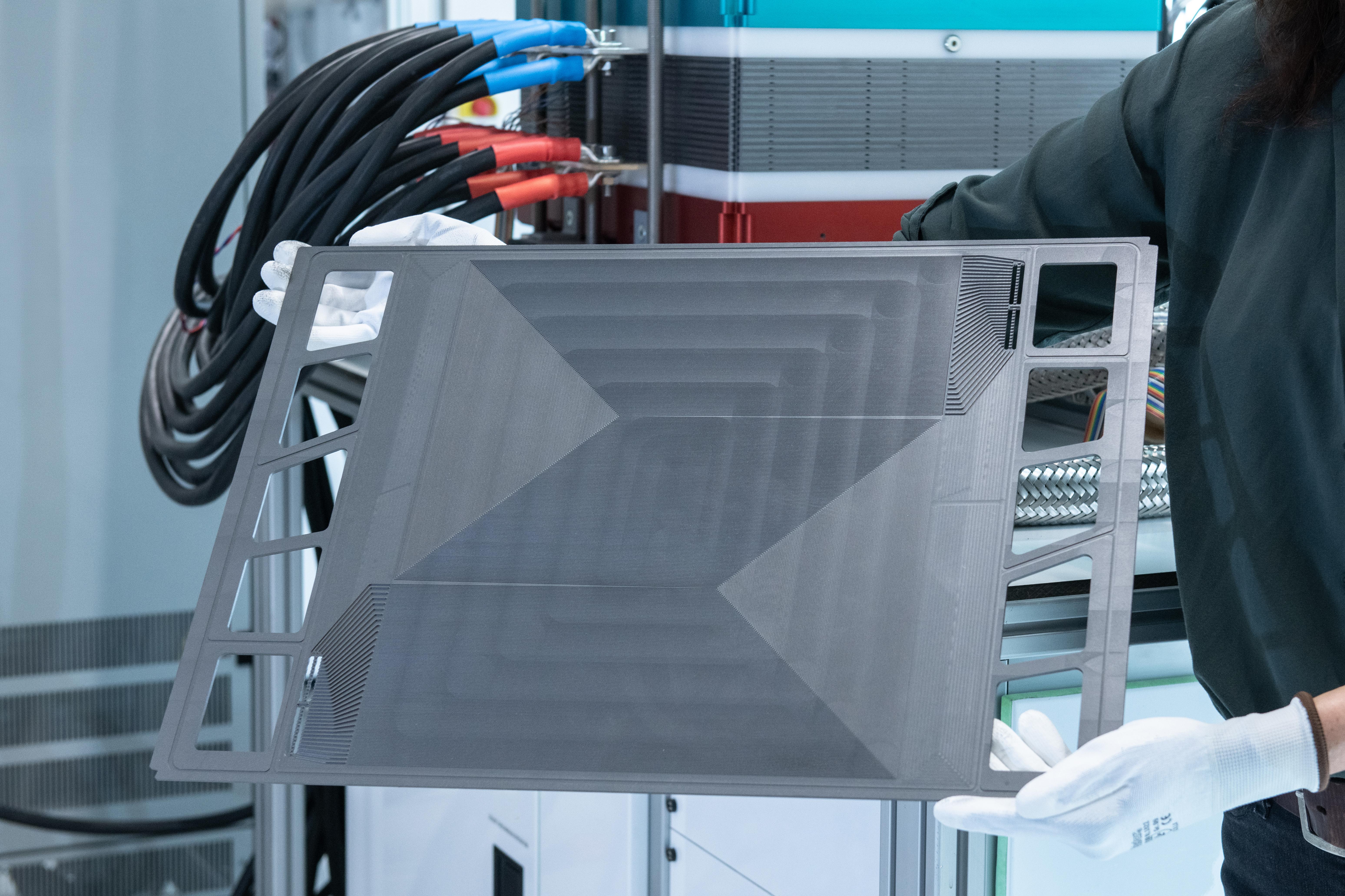 Zum Beispiel ist das generische Stackkonzept für eine maximale Leistung von 150 Kilowatt ausgelegt, wofür 500 Einzelzellen mit jeweils zwei metallischen Bipolarplatten benötigt werden. Der Vorteil metallischer Bipolarplatten liegt in der Möglichkeit, sie mit umformenden Fertigungsverfahren herzustellen, was hohe Stückzahlen bei kurzen Taktzeiten ermöglicht. Die Herausforderung liegt in den dünnen Wandstärken von nur einem Zehntel Millimeter bei einer Länge von über 40 Zentimetern pro Platte.